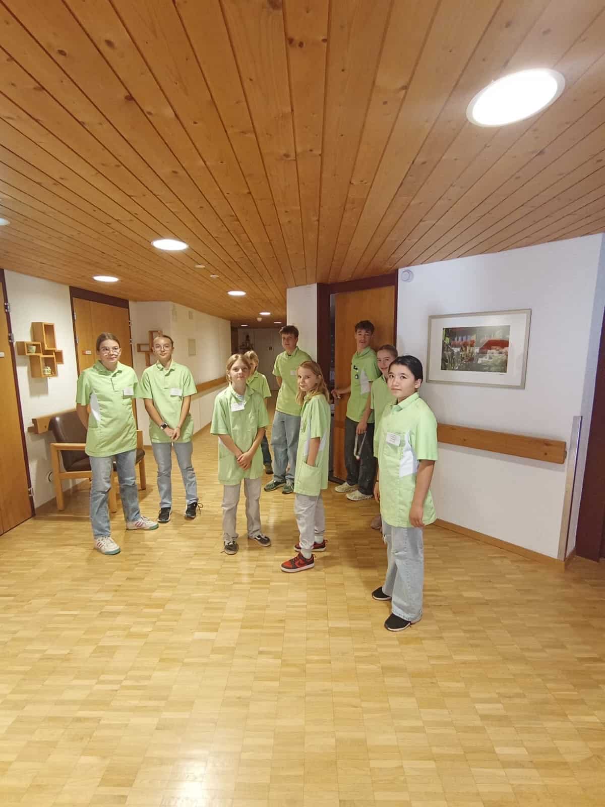 Unterwegs in der Pflege wurde unter anderem demonstiert, wie eine Blutentnahme durchgeführt wird, ein Beinkompressionsverband gemacht wird sowie der Blutdruck und Blutzucker gemessen wird. Am Nachmittag gings an die frische Luft und die Schüler:innen begleiteten einige Bewohner:innen beim spazieren.